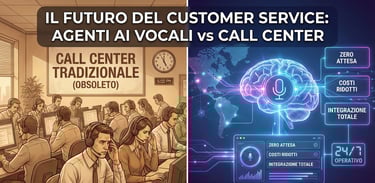 I call center tradizionali stanno scomparendo. Scopri perché gli Agenti AI Vocali sono la soluzione definitiva per abbattere i costi e azzerare i tempi di attesa nel 2026.